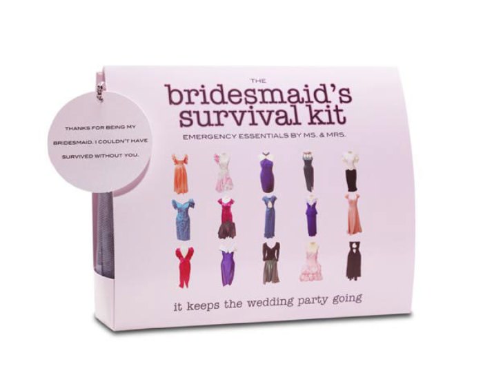 2. Bridesmaid Survival Kit. These are the PERFECT practical gift that can be given the on the day of your wedding, and your bridal party will be so grateful for. Packed with 18 essential items, this is really a great gift. Included in the kit: Folding Hair Brush with Mirror, Hair Spray, Clear Elastics, Bobby Pins, Earring Backs, Emery Board, Clear Nail Polish, Mending Kit, Double-Sided Tape, Stain Remover, Static Remover, Breath Freshener, Deodorant Wipe, Tampon, Adhesive Bandages, Pain Reliever, Handkerchief, Dancing Socks. Available via Mindy Weiss’ e-store and retails for $18.00. It’s not likely that all of these items will be used on the night of the event, so this is another great gift that keeps on giving. Perfect for any woman to throw in her purse and have it at all times! Especially if her purse is as large as mine!