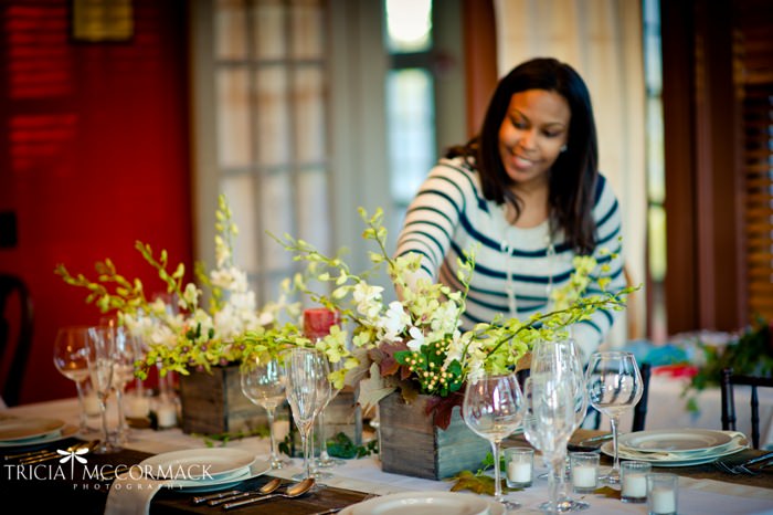 During our stay we were also required to take part in a tabletop competition. The challenge was to choose an invitation suite from Crane’s invitation line, and design a table around it. I chose Crane’s Plum Blossom letterpress invitation. We were also allowed to choose flowers, linens, china and glassware, graciously provided to us by Classical Tent & Party Rentals and Seagroatt Riccardi. Then, we had to choose a location at our Inn to design the table. In researching my Inn, I found that the owners were from Italy, and the Inn had a very warm Italian feel to it. This was perfect to create a very vineyard like setting. I chose simple linens and orchids, along with a farm top table to make my idea come to life. I was lucky to have the very talented Tricia McCormack shoot my table design, she did such an amazing job capturing all the little details. Check out some images from the shoot. You’ll see the invitation I chose on the table and me in action. Also, below all of those pictures, you’ll see my friend Rudy Grant of Experience and Creative Design. Rudy also stayed at the Gateways Inn and he went with a beach theme for his design. After we poured all that wine in our wine glasses for the shoot, we realized that we had to drink.. I know what you’re thinking, poor girl….